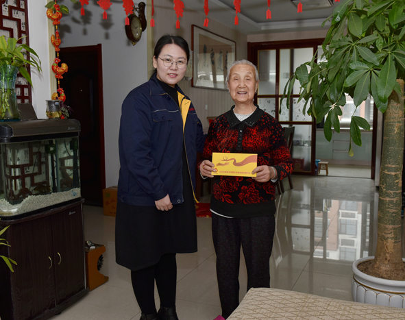 本報訊 (《煙臺日報》水母網(wǎng) 文/圖 翟純明 劉妍宏 陳萍萍)1月16日上午,在山東金潮新型建材股份公司員工孫紹敏的家中,當綜合管理部經(jīng)理孫陽陽將蘊含金潮大愛的900元老人慰問金送到其母親手中時,這位83歲的老人感激之情溢于言表。這是今年春節(jié)前夕,山東金潮股份公司行政人事中心組織各企業(yè)行政人事部門,為企業(yè)員工高齡父母發(fā)放“孝薪”的一個場景。據(jù)悉,今年春節(jié)前夕,金潮公司共計為321名員工438位高齡父母發(fā)放愛心慰問金31.6萬元。