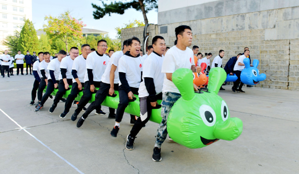 今年新增的趣味項(xiàng)目——毛毛蟲:比賽道具顏色亮麗,憨態(tài)可掬。參賽人員步調(diào)一致,配合默契,合力“駕馭”著這條“怪獸”奮力往前沖。經(jīng)過一番斗智斗勇的較量,比賽前三名相繼產(chǎn)生,他們依次是:地產(chǎn)公司、新材公司、集團(tuán)一隊(duì)。