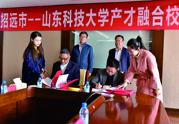 11月24日上午,在金潮公司六樓會議室,招遠市——山東科技大學產(chǎn)才融合校地對接座談會成功舉行。