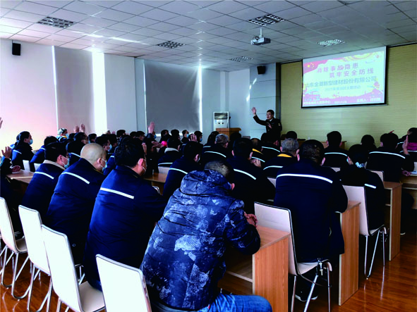 本報訊 1月28日,在PVC辦公樓三樓會議室,金潮新材特邀消防講師來公司舉行消防安全知識培訓(xùn)。金潮新材及金潮建工部分干部員工參加了培訓(xùn)。