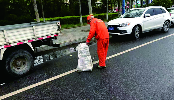 5月10日上午10點(diǎn)左右,一場突如其來的大雨徹底掃平了春日里的風(fēng)和日麗。剎那間,溫度驟降,大雨滂沱,一會兒的工夫路邊已形成了積水。正在清潔路面的潤和物業(yè)保潔人員冒雨堅(jiān)守崗位,用勤勞的雙手清掃著路面,為美化城市環(huán)境默默地奉獻(xiàn)。