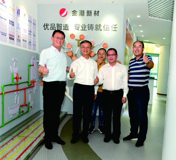本報(bào)訊 6月28日下午,中國塑料加工工業(yè)協(xié)會理事長朱文瑋,秘書長王占杰一行蒞臨金潮新材參觀指導(dǎo)。金潮控股集團(tuán)輪值總裁苑永海,金潮新材總經(jīng)理曹京成,常務(wù)副總經(jīng)理蘭茂衍、技術(shù)總工劉樹遠(yuǎn)等陪同。