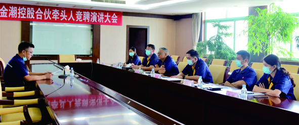 本報(bào)訊 8月2 日上午,金潮控股合伙牽頭人競(jìng)聘演講大會(huì)在六樓會(huì)議室如期舉行。金潮控股執(zhí)行董事程紹華、輪值總裁苑永海、副總裁彭殿坤、總裁助理曹雪松,行政人事、財(cái)務(wù)中心負(fù)責(zé)人出席大會(huì)。