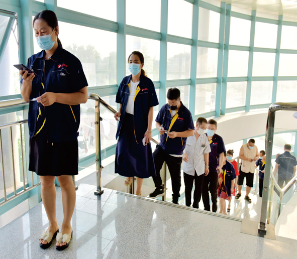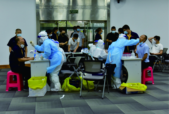 按照上級(jí)全員核酸檢測(cè)的總體部署和要求,金潮控股集團(tuán)在做好“德?tīng)査倍局暌咔榉揽刂R(shí)宣傳、嚴(yán)格人員進(jìn)出登記信息、檢測(cè)體溫、重點(diǎn)區(qū)域環(huán)境消殺、落實(shí)全員新冠疫苗接種工作等常態(tài)化疫情防控的同時(shí),行政人事中心積極與大秦家街道有關(guān)部門溝通協(xié)調(diào),將報(bào)告廳二樓會(huì)議室列為集中監(jiān)測(cè)點(diǎn),要求各企業(yè)行政人事部對(duì)所有在冊(cè)員工的身份信息進(jìn)行登記造冊(cè),并指定專人全程跟蹤,積極組織、配合醫(yī)務(wù)人員的工作,有力有序地開(kāi)展了全員核酸檢測(cè),為有效阻斷“德?tīng)査毙鹿谧儺惒《緜鞑?,攜手筑牢群體抗疫屏障擔(dān)當(dāng)盡責(zé)。