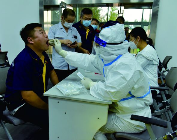 本報(bào)訊 (王 璐 閆藝丹 翟純明 攝影報(bào)道)面對(duì)來(lái)勢(shì)洶洶的“德?tīng)査倍局?,金潮控股集團(tuán)響應(yīng)市政府號(hào)召,認(rèn)真貫徹全市疫情防控工作會(huì)議精神,廣泛動(dòng)員、精心組織、明確分工、壓實(shí)責(zé)任,8月4日和6日,在大秦家街道有關(guān)部門的關(guān)心指導(dǎo)下,積極組織完成了兩輪全員核酸檢測(cè),為全力阻斷“德?tīng)査倍局暌咔閭鞑ヘ暙I(xiàn)“金潮人”的一份力量。
