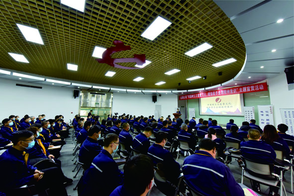 本報(bào)訊 “‘雄關(guān)漫道真如鐵,而今邁步從頭越’。我們將不忘初心,一如既往,開(kāi)拓創(chuàng)新,善作善成,以‘海納百川,有容乃大’的胸懷,以 ‘長(zhǎng)風(fēng)破浪會(huì)有時(shí),直掛云帆濟(jì)滄?!暮狼?,以‘千淘萬(wàn)漉雖辛苦,吹盡狂沙始到金’的毅力,以‘抓鐵有痕,踏石留印’的精神,以‘眾人劃槳開(kāi)大船,同舟共濟(jì)渡難關(guān)’的斗志,乘‘合伙制’改革的強(qiáng)勁東風(fēng),再創(chuàng)新輝煌,續(xù)寫(xiě)新傳奇,再譜新篇章!” 在2022年新年元旦即將到來(lái)之際,12月25日上午,山東金潮控股集團(tuán)有限公司報(bào)告廳二樓會(huì)議室座無(wú)虛席,宣貫者那鏗鏘有力、擲地有聲、充滿激情的感人話語(yǔ),以及陣陣熱烈的掌聲響徹大廳。這是公司舉行“牢固樹(shù)立正能量文化,增強(qiáng)看齊金潮精神意識(shí)”主題宣貫活動(dòng)的精彩瞬間。董事長(zhǎng)程紹華,董事苑永海、彭殿坤、曹雪松,各企業(yè)、各部門(mén)主管級(jí)以上干部及部分骨干員工200余人參加了宣貫活動(dòng)。