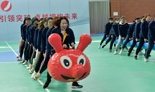 第二階段為趣味比賽活動?;顒臃譃榘魏颖荣惡腿の睹x比賽。現(xiàn)場通過抽簽的方式組建了6支參賽隊,經(jīng)過緊張短暫的團隊建設(shè)環(huán)節(jié),大家消除了彼此間的隔閡,快速的增進信任感和團隊意識。經(jīng)過緊張、激烈的角逐,最終戰(zhàn)神隊和芳華隊分別獲得拔河和毛毛蟲比賽冠軍。