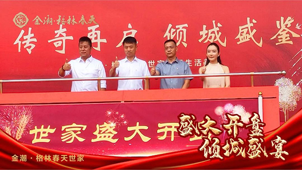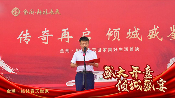 與城共高光,盛事邀齊鑒。此次開盤盛典邀請了世家的業(yè)主、準(zhǔn)業(yè)主以及業(yè)內(nèi)大咖與合作伙伴出席,共同見證招遠(yuǎn)人居傳世新篇的美好時刻。金潮控股集團(tuán)公司總裁曹雪松發(fā)表致辭,并與金潮地產(chǎn)公司總經(jīng)理郝占波、潤和物業(yè)公司常務(wù)副總經(jīng)理陶成亮、格林春天營銷中心張偉共同舉行啟動儀式的開啟。
