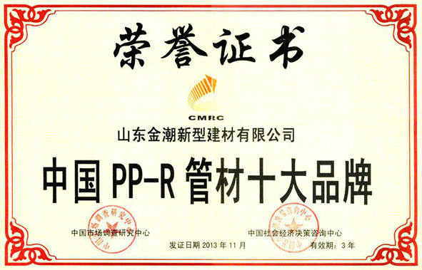金潮管業(yè)榮膺“中國PP-R管材十大品牌”稱號